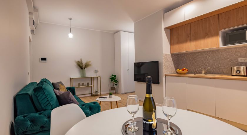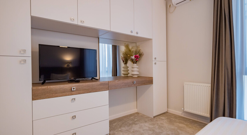 Located just 200 meters from the pristine sandy beach of Mamaia Nord, Ria Apartments invites you to enjoy a comfortable and relaxing stay in our fully equipped apartments. Whether you're seeking a leisurely vacation or a business getaway, each apartment is equipped to meet the most demanding requirements. Enjoy modern amenities such as a dishwasher, washer-dryer, stove, electric oven, microwave, two TVs in each apartment (one of which is a smart TV), air conditioning units in every room, hairdryer, dishes, and cooking utensils. For your convenience, we provide free parking for each apartment, an elevator, and an electric car charging station. With a prime location and top-notch facilities, Ria Apartments promises you an unforgettable experience in Mamaia Nord. Book now and get ready to enjoy a relaxing and comfortable vacation!